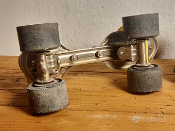 Costruiti con un struttura di metallo , estensibili ,con cinghie gialle regolabili per fissare la propria scarpa al pattino.