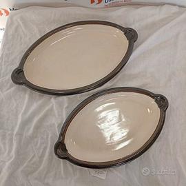 Coppia di Pirofile Franco Bucci Laboratori Pesaro. Ceramica bianca bordo nero.