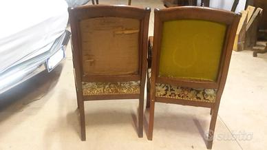 COPPIA DI POLTRONE CARLO X IN NOCE MASSELLO FINEMENTE LAVORATO AD INTAGLIO,DEI PRIMI 800.LE POLTRONE HANNO BRACCIOLI SINUOSI A RICCIOLO CHE POGGIANO SU GAMBE DALLA LINEA MORBIDA .LO SCHIENALE IMBOTTITO DONA ALLA SEDUTA UN APPOGGIO CONFORTEVOLE.