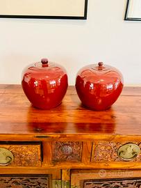 Coppia Di Potiche Sangue Di Bue Cina Metà 800. Presumibile periodo imperatore Daoguang Alte 21 cm e 22 cm Larghe 23 cm