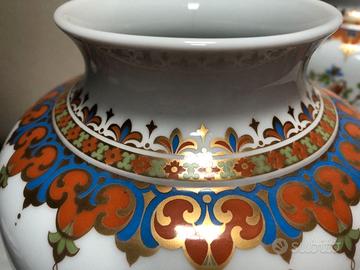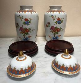Vendo coppia di vasi in porcellana Kaiser provenienti dalla Germania decorati a motivo Kanton, con temi floreali e dettagli dorati.