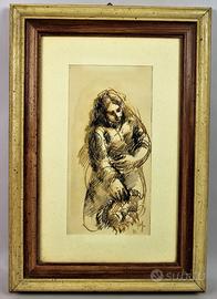 Piacevole coppia di disegni a china acquerellata su cartoncino. Molto ben incorniciati con cornici in legno laccato e in legno con dorature, vetro.