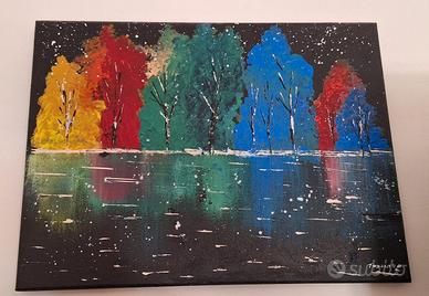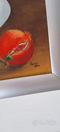 Coppia di quadri - autore Tosini - Natura morta: melograno, coltello, fiasco - Astratto: lago, alberi, natura come da foto visto e piaciuto disponibile e spedibile dal primo giugno