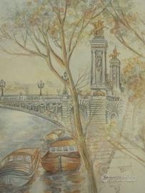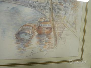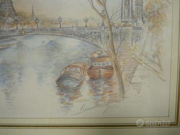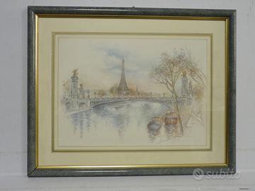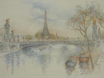 2 graziose e originali vedute di Parigi eseguite a mano con tecnica mista, dalla nota pittrice Francese.