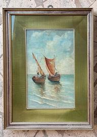 Coppia quadri marina napoletana primi ‘900 (olio su tavola, 50x37 cm) Vendo coppia di dipinti a olio, molto decorativi, raffiguranti marine con barche a vela, in stile scuola napoletana. Tecnica: olio su tavola Dimensioni: 50 x 37 cm ciascuno (con cornice) Epoca: primi/metà ‘900 Provenienza: collezione privata Cornici incluse Disponibile a venderli anche separatamente Ottime condizioni generali (vedi foto). Ritiro a mano a Roma in zona via Marco Polo. Disponibili per la spedizione a distanza.