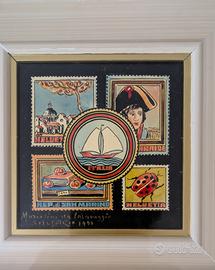 DA CARAVAGGIO DETTO IL FALSARIO MARIOLINO (1924 - 1992) bellissimi coppie di quadri, perfetti, raffiguranti francobolli 1990