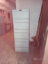 Coppia di schedari Olivetti Synthesis in lamiera stampata vintage. In buono stato di conservazione, con i cassetti perfettamente funzionanti, presentano piccoli punti di ruggine. Disponibili in coppia o singolarmente.