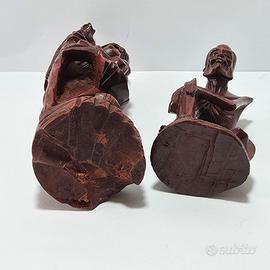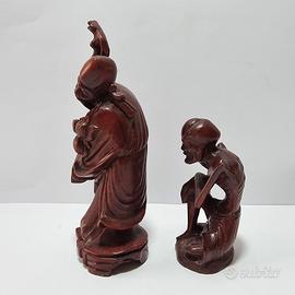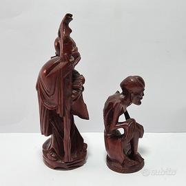 Coppia di sculture di saggi cinesi in legno, risalenti al '900.