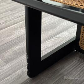 Struttura interamente in legno laccato di colore nero dalla forma geometrica, rivestimento della seduta e dello schienale in paglia di Vienna. Soltanto una seduta presenta un foro sulla paglia ( facilmente risolvibile con un leggerissimo restauro) per quanto riguarda il resto della struttura sono presenti lievi ed ovvi segni del tempo dovuti all’utilizzo e all’età.