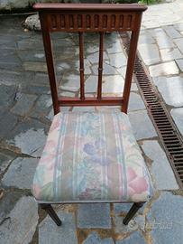 Vendo due seggiole imbottite in legno massello di mogano, dallo stile classico ed elegante. Acquistate tempo fa presso un antiquario; non conosco la data esatta ma si tratta sicuramente di pezzi di pregio artigianale.