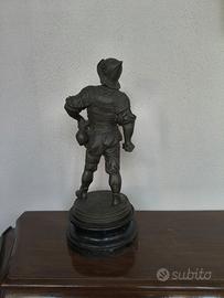 Coppia di soldati d'epoca, su base di legno antico, si presume di zama, altezza 38 cm. Non spedisco