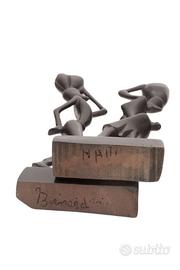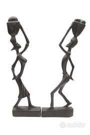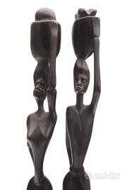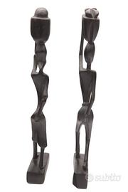 Coppia di statuette haitiane anni ’60 in legno scuro intagliato – firmate