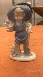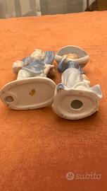 Due belle statuine in porcellana policroma, raffiguranti una damina e fanciullo fioraio. Cm 12.