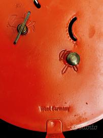 Splendide sveglie meccaniche originali prodotte in Germania Ovest (West Germany) dal celebre marchio Blessing. Un vero pezzo di storia del design degli anni '70, perfetto per un tocco Space Age o modernariato in camera o in ufficio. Caratteristiche principali: Meccanismo: Originale a carica manuale. Funzionamento: una delle due funziona regolarmente, ma non suona la sveglia, l'altra funziona la sveglia ma la carica non va. Estetica: Colore rosso vibrante. Presentano una bellissima patina naturale e leggeri segni del tempo che ne certificano l'autenticità e il fascino vintage (nessun graffio profondo). Dimensioni: Diametro del quadrante di 10 cm. Un oggetto iconico per chi ama il ticchettio classico e l'affidabilità della meccanica tedesca d'epoca.