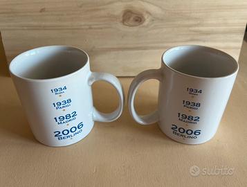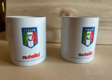 Coppia di tazze nuove Mug Nutella Ferrero La Colazione dei campioni del mondo!! Con stella della nazionale italiana FIGC ed elenco dei mondiali vinti!! Da collezione perfette e nuove Dimensioni: altezza 10 cm, tazza più manico 13 cm, diametro tazza 8 cm!