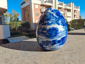2 uova in ceramica bianca e blu dipinte a mano della Royal Copenhagen 11x7cm disegni raffigurante paesaggi, rovine,