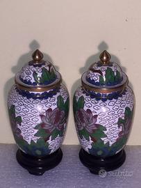 Coppia di Vasetti, vintage, da soprammobile o collezione in Cloisonnè Cinese, stato dei vasi perfetto.