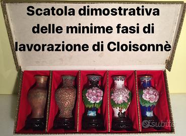 L'ultima foto rappresenta le 5 fasi di lavorazione di un Cloisonnè , quelli belli da collezione arrivano a 7 lavorazioni come nel caso di questi vasi.