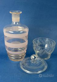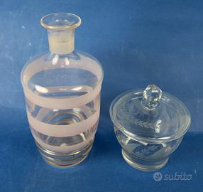 Coppia di raffinati oggetti classici in vetro trasparente e lavorazioni a mano.