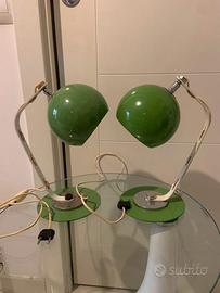 due Lampade a bulbo oculare in metallo smaltato verde produzione Italia fine anni 60 inizi 70