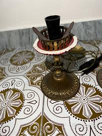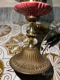 coppia di lampade da tavolo vintage originali anni ’40/’50, realizzate in ottone e ceramica.