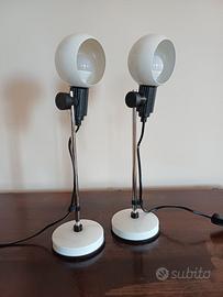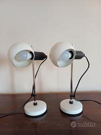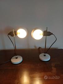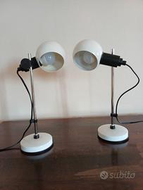 Coppia lampade vintage space age, girevoli e direzionabili, colore bianco, originali, in buone condizione con qualche segno del tempo, perfettamente funzionanti, impianto elettrico originale, sono pronte da mettere sul comodino, altezza massima cm. 35, diametro base cm.11, montano lampadine E14 non comprese, viste e piaciute, consegna a mano zona Parma oppure si effettuano spedizioni, per visionare altre lampade di modernariato, antiche o vintage cliccare sul mio profilo.