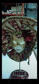 Bellissimi portagioie a forma di maschera veneziana. Sono due pezzi, uno color crema e uno rosso scuro. Entrambi sono decorati con pizzi e dettagli dorati. Perfetti per aggiungere un tocco di eleganza alla tua stanza! - Realizzati con materiali di qualità - Design raffinato e dettagliato - Ideali per riporre gioielli o altri piccoli oggetti