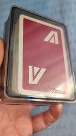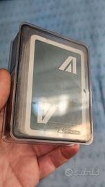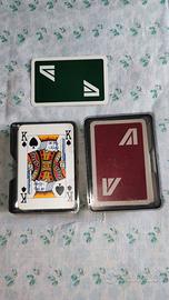 Coppia di mazzi di carte da gioco Modiano vintage anni '80 per la compagnia aerea Alitalia, con custodie di plastica rigida trasparente originali. I mazzi di carte non sono sigillati ma in ottime condizioni. Oggetto da collezione.