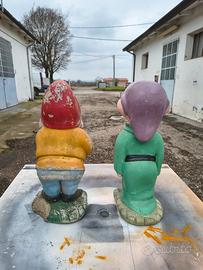 Due statue da giardino vintage in cemento rinforzato con metallo.