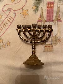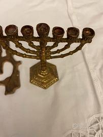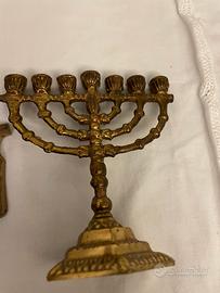 Menorah da viaggio in bronzo a marchio wainberg 10x11 ,+ altro oggetto sacro sempre in bronzo 13 x 11