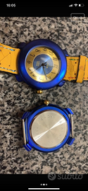 n.2 orologio gadget Kodak in acciaio inossidabile, prodotto in svizzera , ghiera acciaio e blu. cinturino logorato . gadget pubblicitario per fotografi e commercianti del settore. anni 90.