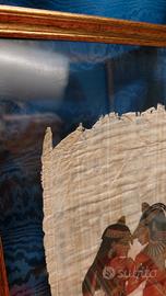 Coppia Di Papiri Artigian Stile Antico Egitto Nefertari Cornice In Doppio Vetro