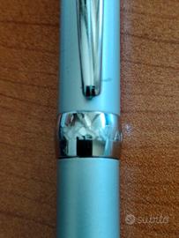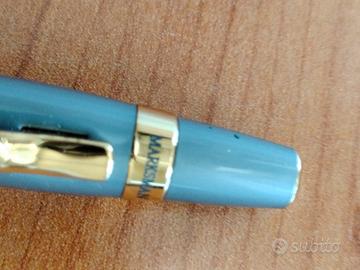 Coppia di penne a sfera Marksman complete di cartuccia; una grigio chiaro/nero con dettagli cromati e l'altra grigio scuro con dettagli dorati. Fondi di magazzino