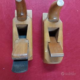 Coppia di piccole piallette con corno, in legno di faggio verniciato, una mancante della lama, comunque interessanti. Non sembrano mai usate ma comunque si possono modificare per ottimizzarle a lavori più fini e delicati, o trasformane una in un piccolo sbozzino. 20 EURO PER LA COPPIA. SOLO RITIRO, NO SPEDIZIONE, ASTENERSI PERDITEMPO. La lista degli articoli in vendita viene aggiornata costantemente, se l'articolo è presente in lista significa che è ancora disponibile.