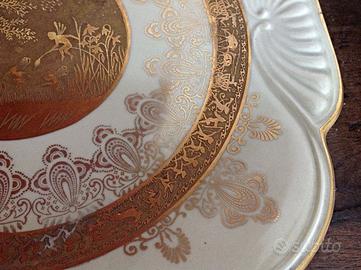 Il piatto da portata in stile Art Nouveau presentano uno sfondo (uno beige e l'altro più chiaro) con splendidi dettagli dorati lucidi. Al centro è raffigurata una magica scena dorata di ninfe o fate che si divertono all'aperto, immersi nella natura, tra gli alberi. È presente anche una spessa fascia dorata che raffigura fate che corrono nell'erba su carri trainati da cavalli.