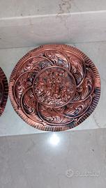 Coppia di piatti in rame sbalzato con decorazioni e Cesellato a mano