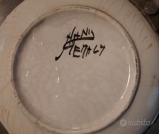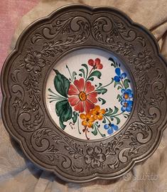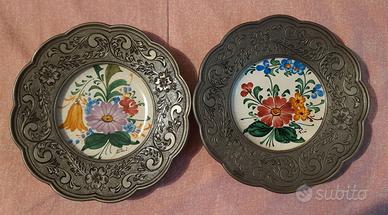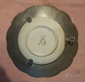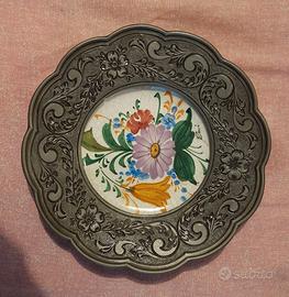 Coppia piattini ceramica e peltro vintage
