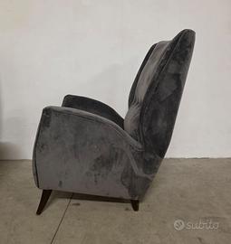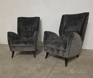 Raffinate poltrone anni 50' con schienale alto in velluto grigio.