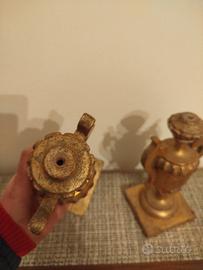 Coppia porta palme urne da altare, della prima metà del XIX secolo, in legno dorato intagliato. Segni di normale usura. Altezza 25 cm profondità 12 cm