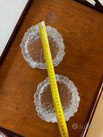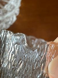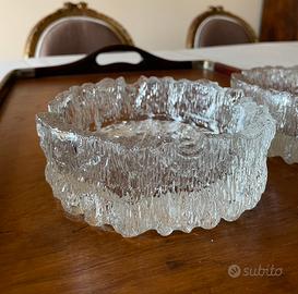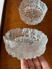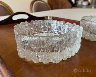 Coppia di porta cenere in vetro littala. Posacenere in vetro testurizzato con corteccia di design finlandese vintage, (littala Tapio Wirkkala Seita ? La gamma Ultima Thule in vetro trasparente creata nel 1968 da Tapio Wirkkala.