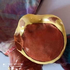 coppia statuine di origine pugliese, anni '80 in terracotta invetriata. fatti a mano. rappresentano un re e una regina. regina in ottime condizioni; il re presenta un paio di sbeccature, come da foto. altezza teste: 8 cm, altezza complessiva 25 cm.
