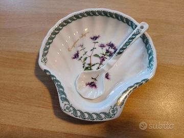 - Una salsiera presenta un disegno di Origanum vulgare con un cucchiaino abbinato.