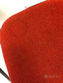 Struttura in alluminio presso-fuso, seduta e schienale in legno curvato con copertura in tessuto di colore ROSSO marchio di produzione impresso sotto la seduta. CONDIZIONI OTTIME Altezza cm 78 Larghezza cm 55