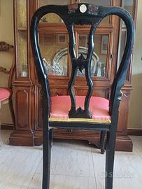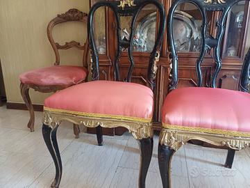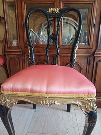 COPPIA DI SEDIE IN LEGNO LACCATO, XIX SECOLO a fondo nero con finiture in oro cm 96X48X43