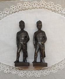 Coppia di due soldatini in bronzo lavorato rappresentanti due Lancieri - Cavalleria. Condizioni perfette. Misure dettagliate sull'ultima foto. Vendo anche separatamente.
