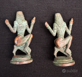 Coppia Statuette in Metallo Patinato – Figure Stilizzate Danza Rituale, Stile Antico Mediorientale (Zama)