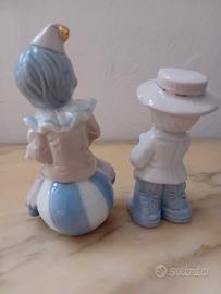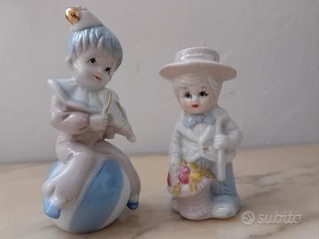 Coppia di statuine in Porcellana,rifinite con cura con tonalità azzurro chiaro,con marchio corona P,h.cm.13 e cm.11,egregiamente conservate.