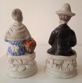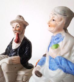 Coppia di due statuette, raffiguranti due vecchietti/nonni, in porcellana Biscuit, dipinta a mano.