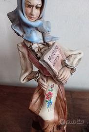 Coppia vecchie statuine sarde Stelio Mola, ceramica artigianale, dipinte a mano, la figura femminile è leggermente sbeccata all'interno, altezza 35cm