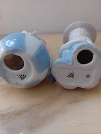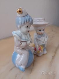 Deliziosa coppia di statuine vintage in Porcellana smaltata,colori tenui pastello con dettagli dorati che rendono l'insieme decorativo e raffinato,tipica produzione anni 50-70',marchio presente sul fondo,altezza cm.13 e 11,ottime condizioni,spedizione accurata.